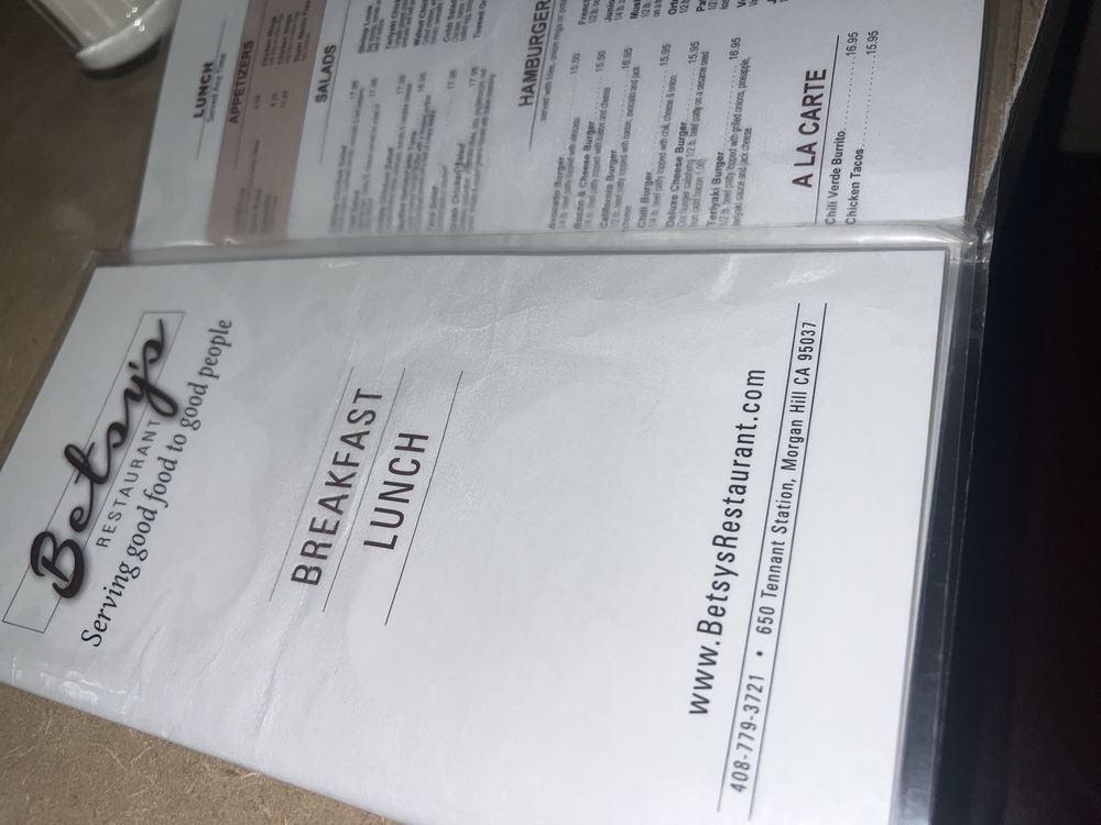 Betsy’s Restaurant in Morgan Hill, CA, is a beloved American diner known for its exceptional food and welcoming atmosphere. With a variety of vegan and vegetarian options, this family-owned establishment caters to all dietary preferences. The attentive staff, like Jennifer and Jordan, provide top-notch service, ensuring a pleasant dining experience for all guests. The cozy outdoor seating area is perfect for enjoying a meal with furry companions, making it a popular spot for locals and visitors alike. The homemade biscuits and gravy and fluffy pancakes are crowd favorites, showcasing the restaurant's commitment to delicious, comforting dishes. Betsy’s Restaurant is a gem in the community, offering not just great food but also a sense of warmth and hospitality that keeps customers coming back for more.
