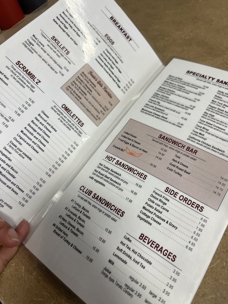 Half pound hamburger patty, tomatoes, two eggs, cottage cheese and choice of toast.